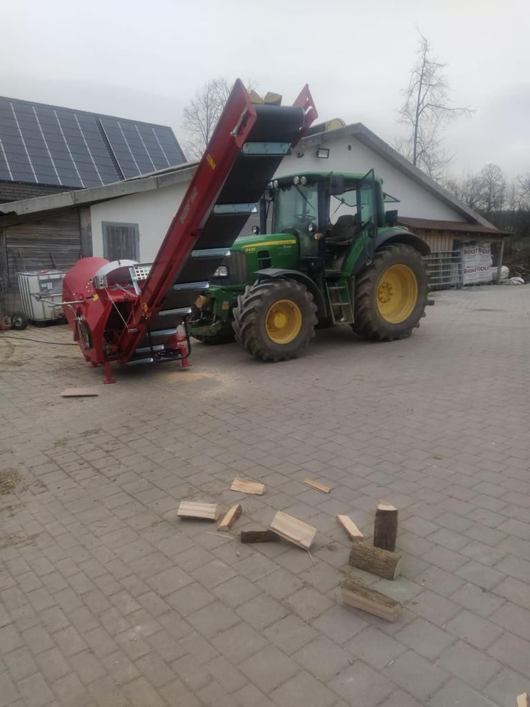 Sie haben 1m langes, gespaltenes Holz gekauft oder auf Lager und wissen nicht wie sägen? Dann sind Sie bei uns richtig. Wir bieten Lohnsägen an mit unserer Trommelsäge. Preis bezieht sich auf Säge mit zwei Person pro Stunde. Anfahrt kommt extra dazu sowie Traktor, wenn sie per Zapfwelle betrieben werden muss. Es werden max. ca. 10 Raummeter pro Stunde gesägt, wenn das Holz nahe an der Säge ist. Hinten große Anhänger stehen oder auf einen Haufen gesägt wird. Es muss eine weitere Person gestellt werden um die angegebenen Raummeter in einer Stunde zu sägen.